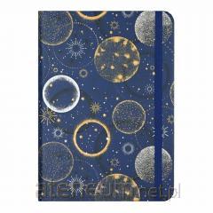 Notatnik kołowy. Okładka z tektury w linie. Zapięciena gumkę w kolorze pokrowca. 96 arkuszy o gramaturze 80 g/m2. Różne wzory: linie poziome, kwadraty 4 x 4 mm i gładkie. Rozmiar A5. Wymiary: 210x 148 mm. Biały kolor.
