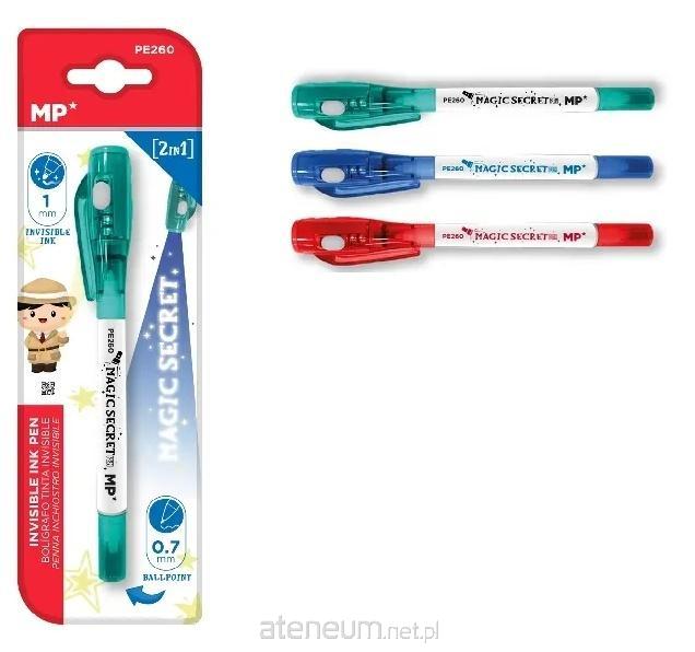 Niewidoczny długopis. Zabawny i świetny do pisania tajnych i ukrytych wiadomości! Zawiera małą latarkę, która jest w stanie odkryć napisaną wiadomość,oświetlając ją swoim światłem. 2 w 1. Podwójna końcówka z włókna 1 mm i 0,7 mm. Blister 1sztuki.