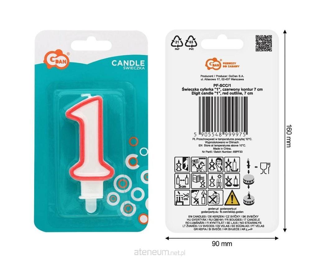 ŚWIECZKA CYFRA 1, CZERWONY KONTUR