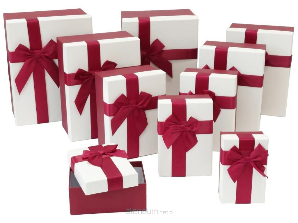 Pudełko kwadrat z kokardą 3szt czerwony ROZETTE