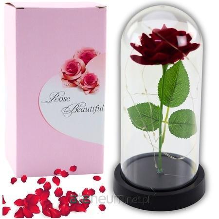 Wieczna Róża w Kopule z Oświetleniem LED - Czerwona Wieczna róża w kopule z oświetleniem LED to elegancki i symboliczny prezent, który wyrazi Twoje uczucia i doda wyjątkowego charakteru każdemu wnętrzu. Pod wpływem subtelnego światła LED tworzą niepowtarzalną atmosferę, idealną na romantyczne okazje. KLUCZOWE CECHY PRODUKTU Wieczna Róża Symbol miłości i uczucia, który nigdy nie przemija. Róża zachowuje swoje piękno na zawsze, nie wymagając żadnej pielęgnacji. Oświetlenie LED Delikatne światło LED podkreśla piękno róży i tworzy ciepły nastrój, idealny do dekoracji wnętrz i romantycznych chwil. Kopuła Elegancka osłona, która chroni różę i pozwala cieszyć się jej urokami z każdej strony. Plastikowa podstawka Solidna i stabilna podstawka, zapewniająca bezpieczeństwo i estetykę prezentu. SPECYFIKACJA Wymiary kopuły: 11 cm x 21 cm Wymiary opakowania: 22 cm x 12 cm x 12 cm Źródło zasilania: 3 x AAA (baterie nie są dołączone) Materiał róży: Wysokiej jakości tworzywo sztuczne Podstawka: Plastik Oświetlenie: 20 diod LED o ciepłym białym świetle Opakowanie: Prezentowe pudełko ZAWARTOŚĆ ZESTAWU Wieczna czerwona róża w kopule Lampki LED Plastikowa podstawka Prezentowe pudełko DODATKOWE ATUTY Unikalny design - Perfekcyjnie odwzorowana róża o naturalnym wyglądzi, idealna do dekoracji wnętrz. Symbolika - Wieczna róża to symbol trwałej miłości, co czyni ją idealnym prezentem na każdą okazję. Łatwość obsługi - Proste włączanie i wyłączanie światełek LED, zapewniające wygodę użytkowania. Ekskluzywna jakość - Dopracowane detale i wysokiej jakości materiały sprawiają, że róża prezentuje się luksusowo.
