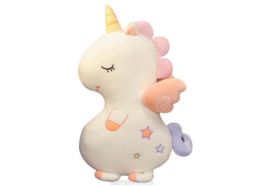 Pluszowy jednorożec to idealna zabawka oraz dekoracja pokoju dziecięcego, która łączy w sobie miękkość, uroczy design i bezpieczeństwo. Dzięki wysokiej jakości materiałom, maskotka jest niezwykle przyjemna w dotyku, co sprawia, że dzieci chętnie się do niej przytulają. Biały kolor z tęczowymi akcentami nadaje jej bajkowego wyglądu, który zachwyci każdego małego miłośnika jednorożców.