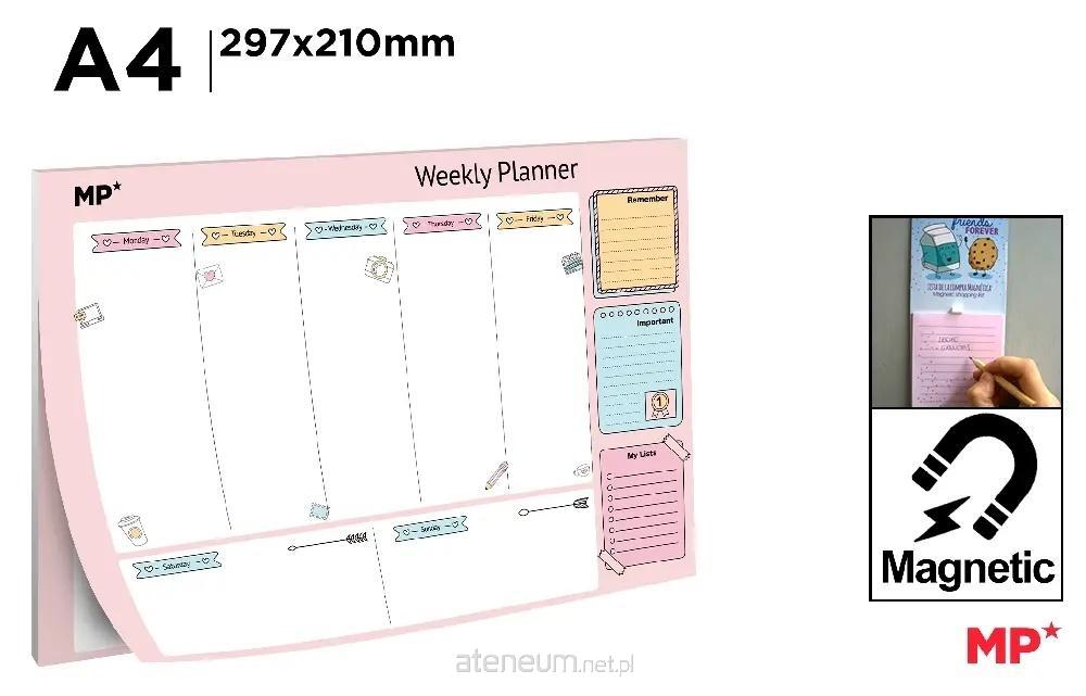 Planer tygodniowy z miejscem na każdy dzień tygodnia, czy to w domu, biurze, szkole czy na uniwersytecie. Miejsca na podsumowanie, pilne notatki, żeby nie zapomnieć... 54 kartki na papierze 90 g/m2.