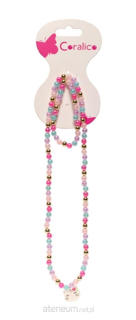 Naszyjnik i bransoletka z różnokolorowymi koralikami. Naszyjnik z motywem kotka. Długość całkowita naszyjnika 24cm