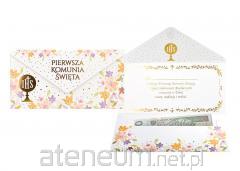 Koperta podarunkowa na I Komunię Świętą KOP-011. Koperta podarunkowa jest eleganckim sposobem na podarowanie bliskiej osobie banknotu lub karty podarunkowej. Koperta jest kolorowa i uszlachetniona metalizowaną folią hot-stamp, jest solidnie wykonana i wyposażona w rzep, co umożliwia jej wielokrotne otwieranie i zamykanie. Koperta zawiera życzenia w środku. Specyfikacja: wymiary: 20 x 10,5 cm (po złożeniu) wnętrze: życzenia w środku okazja: Komunia