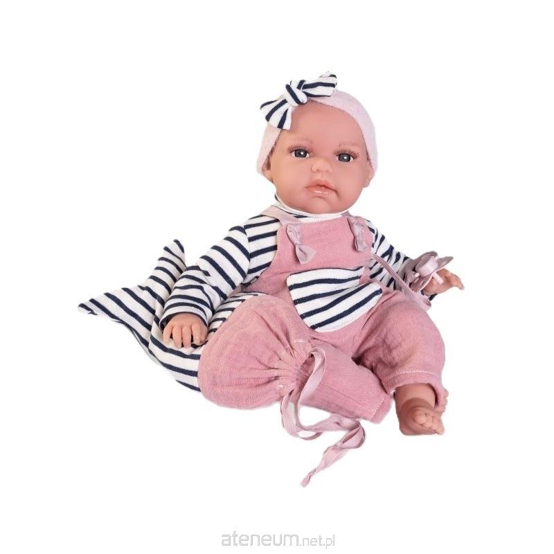 Gaworząca lalka hiszpańska Toneta z torebką Antonio Juan 70332 Szczególną popularnością wśród unikalnych lalek hiszpańskich marki Antonio Juan cieszą się bobasy interaktywne. Toneta 70332 słodko gaworzy, uatrakcyjniając dziecku zabawę w odgrywanie roli troskliwej opiekunki. Zachwyca charakterystyczna dla Tonety pogodna twarzyczka oraz niebieskie oczka opatrzone wianuszkiem długich rzęs. 34-centymetrowa lalka hiszpańska, posiada główkę i ruchome kończyny wykonane z miękkiego, przyjemnego w dotyku winylu. Dzięki miękkiemu brzuszkowi jest idealna do przytulania. W zestawie także miękka torebka dla dziecka i smoczek magnetyczny. Hiszpańska lalka Baby Toneta 70332 w komplecie z akcesoriami i szytymi ręcznie ubrankami Realistycznie wyglądająca, winylowa dziewczynka z miękkim brzuszkiem posiada wyrzeźbione włoski oraz delikatnie malowane brwi, usta, paznokcie i fałdki. Toneta od marki Antonio Juan ubrana jest w mięciutką, bawełnianą bluzeczkę w paski oraz różowe muślinowe ogrodniczki. Strój dopełnia pluszowa opaska na głowę, zdobiona kokardką. W zestawie znajduje się także smoczek na tasiemce oraz prezent dla dziewczynki: miękka torebka na ramię woreczek o kształcie rybki. Funkcyjna lalka hiszpańska Toneta 70332 marki Antonio Juan Idealna do przytulania i zabawy lalka hiszpańska 70332 posiada wszystkie wymagane certyfikaty bezpieczeństwa. Ręcznie wykonana w całości w Hiszpanii, zapakowana jest w biało-różowe, ozdobne pudełko z wieczkiem. Doskonale sprawdza się jako wyjątkowy upominek dla miłośniczki unikalnych zabawek. OSTRZEŻENIE! Zabawka nie jest odpowiednia dla dzieci poniżej 36 miesiąca. Zawiera drobne elementy, których połknięcie grozi niebezpieczeństwem. UWAGA. Przed oddaniem zabawki dziecku należy usunąć i wyrzucić wszystkie zabezpieczenia. Kolory, wzory, zawartość produktu mogą się różnić.