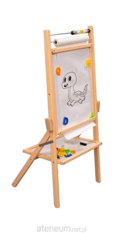 Obrotowa, suchościeralno-kredowo-magnetyczna kolorowa tablica z rolką papieru i liczydłem. Gąbka, kreda, marker, literki magnetyczne w zestawie.