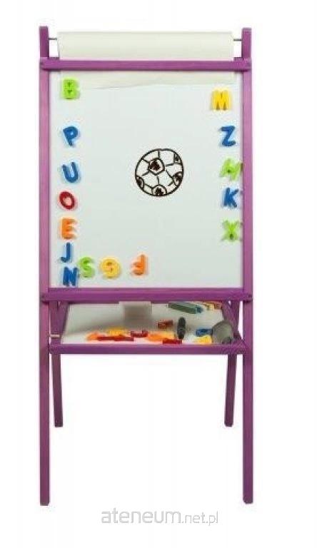 Średnia tablica magnetyczna dwustronna drewniana - jasnofioletowa z rolką papieru. Tablica zawiera marker, kredę oraz gąbkę.