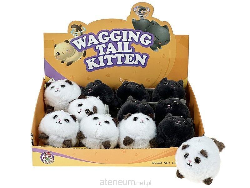 Kotek z rybą machający ogonem pluszowy 13cm MIX