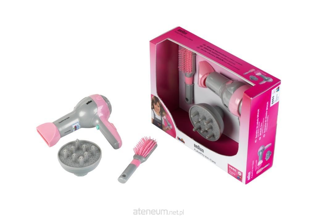 Dzięki zabawie suszarką Braun z dyfuzorem i szczotką, stylizuj i układaj fryzury jak prawdziwa fryzjerka! Suszarka dmucha powietrzem, ale nie nagrzewa się, dzięki czemu jest całkowicie bezpieczna w użytkowaniu przez dzieci. Zabawka stworzona jest na licencji firmy Braun i swoim wyglądem nawiązuje do urządzenia istniejącego w rzeczywistości. Zabawka jest nie tylko bezpieczna w użytkowaniu, ale sprawia również, że dziecko czuje się jakby korzystało z prawdziwej suszarki. Niemiecka firma Klein specjalizuje się w tworzeniu zabawek na licencji. Małe, plastikowe zabawki wyglądają niczym prawdziwe, elektroniczne urządzenia codziennego użytku. Kolekcja suszarek Klein na licencji Braun jest propozycją skierowaną głównie dla dziewczynek. Seria oferuje szeroką gamę produktów doskonale uzupełniających się na wzajem. Podczas zabawy dzieci mogą naśladować zaobserwowane w świecie dorosłych sytuacje. Zabawka wymaga użycia baterii, które nie są częścią tego zestawu.