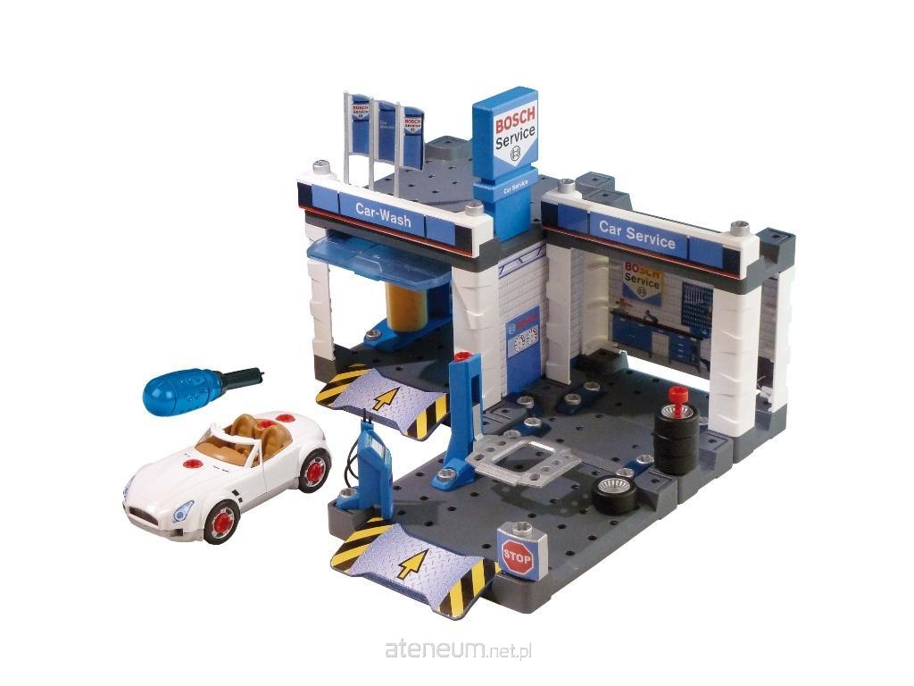 Zestaw ten pochodzi z serii konstrukcyjnej zabawek Klein powstałej na licencji Bosch, będący popularną serią zabawek skierowaną do chłopców. Stacja serwisowa z myjnią Bosch została stworzona specjalnie dla małego fana motoryzacji. Dzięki zestawowi dziecko może stać się mechanikiem jak i kierowcą super sportowego pojazdu. W skład zestawu wchodzi wspaniała stacja obsługi pojazdów z dołączoną myjnią samochodową do samodzielnego montażu, a także biały samochód sportowy, który mały mechanik może skręcić i rozkręcić dowolną ilość razy za pomocą dołączonego niebieskiego śrubokrętu. W zestawie znajduje się zapasowy komplet kół, część karoserii czy spojlery. Auto po złożeniu ma wymienne ruchome koła. Cały budynek jest rozkładany i można do jego montażu także używać śrubokrętu, albo wkrętarki dostępnej w innych kompatybilnych zestawach Klein na licencji Bosch. Ruchome gąbki czy szczotki myjni imitują prawdziwe mycie, a w części serwisowej znajduje się także ruchoma platforma oraz kokpit z komputerem. Wszystkie elementy auta, myjni czy stacji oraz śrubki są na tyle duże, że z przykręcaniem poszczególnych elementów poradzi sobie już nawet 3 latek. Każdemu małemu wielbicielowi motoryzacji taka zabawka z pewnością przypadnie do gustu. Zabawka daje dzieciom nie tylko możliwość zbudowania zabawki od podstaw, ale także możliwość używania zabawkowych narzędzi, które są realistyczną kopią tych faktycznie istniejących. Zabawka ta przyniesie dziecku dużo więcej radości i satysfakcji niż inne zabawki, gdyż tę dziecko stworzy samodzielnie. Zabawki do składania pozwalają dzieciom ćwiczyć ich zdolności manualne i koordynację oko-ręka, jak również wyobraźnię i kreatywność, a to za sprawą wielu dostępnych kombinacji. Zabawka wykonana jest z wysokiej jakości materiału, który jest bezpieczny dla dzieci oraz odporny na uszkodzenia. Jest to zabawka łącząca w sobie kilka istotnych cech: majsterkowanie, kreatywność oraz klasyczną zabawę.