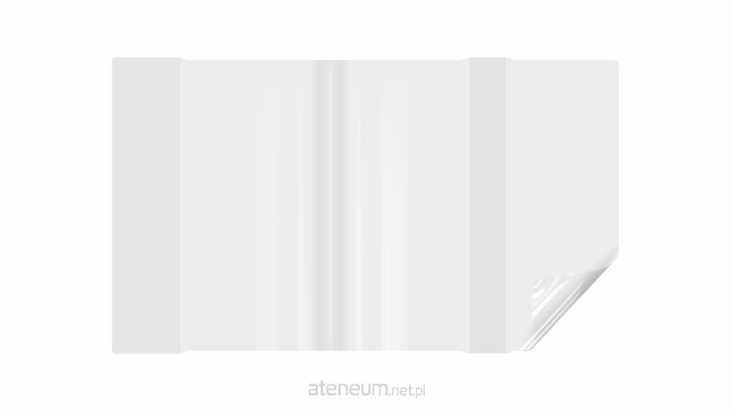 Wykonana z przezroczystej folii PVC. Bezbarwne zakładki. Z jednej strony okładki możliwość regulowania. Uskok zapobiegający zaginaniu się okładki. Łatwoodlepny kod kreskowy na każdej sztuce.