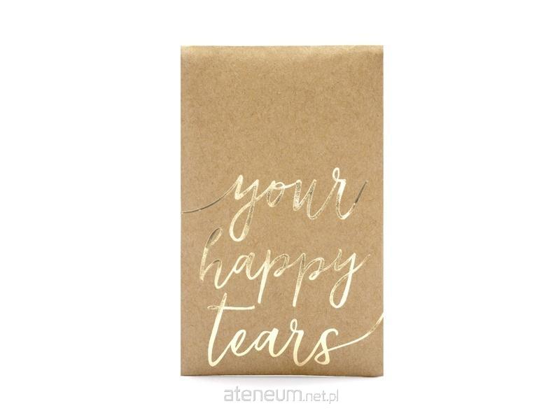 Chusteczki higieniczne spakowane w kraftową kopertę ze złotym napisem Your happy tears, zestaw zawiera 10 kopert, w każdej po 3 chusteczki. Wymiary pojedynczej koperty ok. 7,5 x 12 cm.(1 op. / 10 szt.)
