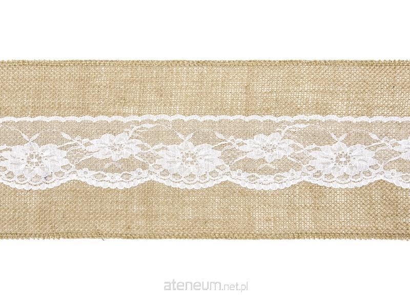 Szarfa na krzesło z koronką, wykonana z juty, szerokość ok. 15 cm, długość ok. 2,75 m.