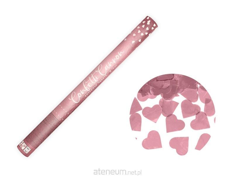 Tuba strzelająca metalizowanymi sercami w kolorze różowego złota, długość ok. 60 cm.