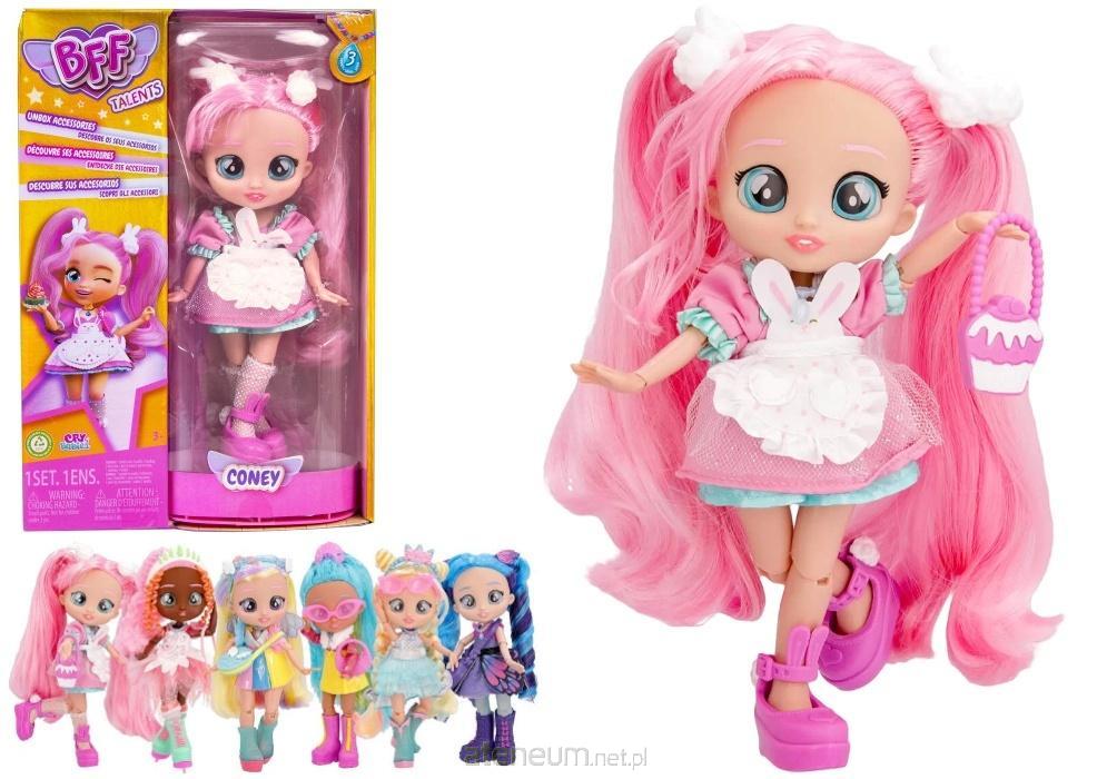 Przedstawiamy Coney jedną z uroczych lalek z serii Cry Babies BFF Talents! Ta wyjątkowa postać zachwyca swoim cukierkowym wyglądem i pastelowym stylem. Coney to lalka inspirowana słodkościami, co widać w jej stroju i dodatkach. Jej różowe włosy spięte w dwie wysokie kitki, wielkie błyszczące oczy i delikatna buzia sprawiają, że wygląda jak bohaterka bajki.