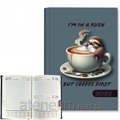 W środku miejsce na notatki, roczny planer, oznaczone wybrane święta międzynarodowe, mini kalendarium, międzynarodowe numery telefonów, strefy czasowe, dodatkowe informacje, skorowidz na adresy i telefony,