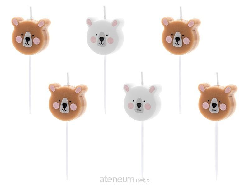 Świeczki urodzinowe Miś, mix kolorów, wysokość ok. 3 cm.(1 op. / 6 szt.)
