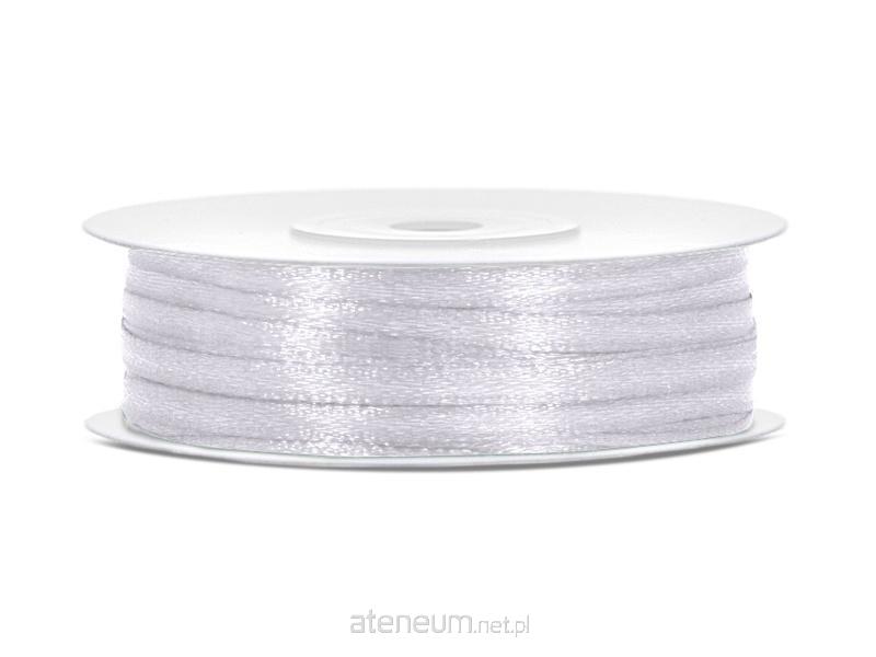 Tasiemka satynowa w kolorze białym, szerokość 3 milimetry, długość 50 metrów.(1 szt. / 50 mb.)