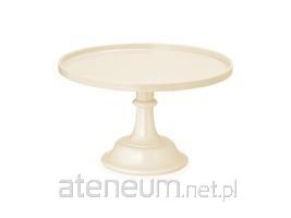 Patera na słodycze na nóżce w kolorze beżowym, średnica ok. 24 cm i wysokość ok. 14,5 cm.