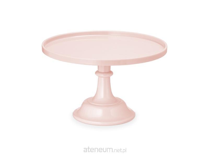 Patera na słodycze na nóżce w kolorze jasnoróżowym, średnica ok. 24 cm i wysokość ok. 14,5 cm.