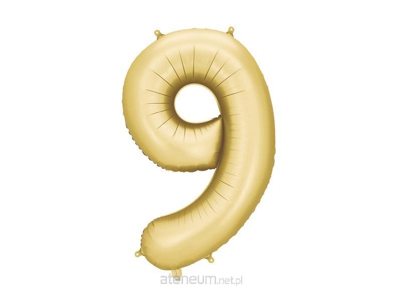 Balon foliowy satynowy Cyfra 9 w kolorze złotym, rozmiar przed napompowaniem ok. 100 cm (39''), rozmiar po napompowaniu ok. 86 cm (34''). Do napompowania powietrzem i helem. Zestaw zawiera słomkę. Balon jest samouszczelniający się. Posiada haczyki ułatwiające montaż balona do dekoracji.