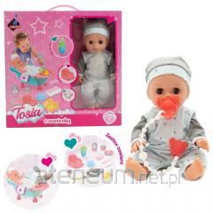 Winylowa lalka hiszpańska Reborn z miękkim brzuszkiem przypomina wyglądem oraz wagą prawdziwe dziecko. Alina mierzy 45 cm, ma duże, niebieskie oczy opatrzone gęstymi rzęsami. Niewielkie dłonie ze smukłymi palcami, manicure, pedicure, lekko zaróżowiona skóra, malowane brwi dodają realizmu. Dziewczynka ma krótkie jasne włoski ozdobione opaską wiązaną w kokardkę. Wszystkie detale wykonano ręcznie, dzięki czemu lala jest wyjątkowa. Czym wyróżnia się lalka hiszpańska Reborn marki Marina & Pau? Kończyny i głowa lalki hiszpańskiej z serii Reborn zostały wykonane z niezwykle miękkiego winylu, który jest gładki i przyjemny w dotyku. Tułów bobasa jest uszyty z materiału i wypełniony miękką wyściółką z włókien kapokowych. Naturalny materiał jest lekki i sprężysty, długo zachowuje swoje pierwotne właściwości. Przegubowa lalka ma ruchome kończyny, dzięki czemu można ją ułożyć w różnych pozycjach. Wystarczy przegiąć delikatnie kończyny. Lalka hiszpańska Reborn Alina 3002 w komplecie z ręcznie szytymi ubrankami Dziewczynka jest ubrana w: białą tunikę z eleganckim kołnierzykiem, różowy sweterek, muślinowe turkusowe krótkie spodenki, skarpetki oraz buciki. Dopełnieniem zestawu jest smoczek z małą zabaweczką. Urocza Alina 3002 zapakowana jest w piękne, estetyczne pudełko z charakterystycznym logo producenta. To oryginalny pomysł na wyjątkowy prezent dla miłośniczki lalek hiszpańskich.