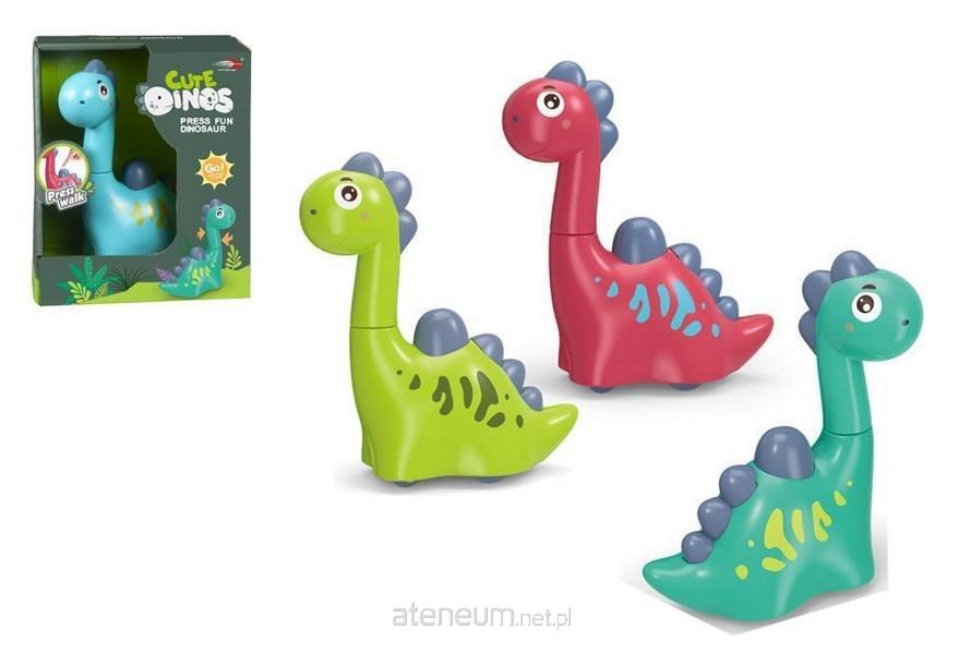 Kolorowy dinozaur dla dzieci wykonany z plastiku. Posiada mechanizm napędzany, umożliwiający poruszanie się na płaskiej powierzchni. Wystarczy wcisnąć przycisk. Dodatkowo głowa dinozaura jest ruchoma i obraca się dookoła własnej osi. Zabawka dla dzieci od 3 lat. Produkt występuje w kilku wersjach kolorystycznych, wybierany losowo. Cena dotyczy jednej sztuki. Produkt zapakowany w kartonowe opakowanie. Podane wymiary są wymiarami opakowania.