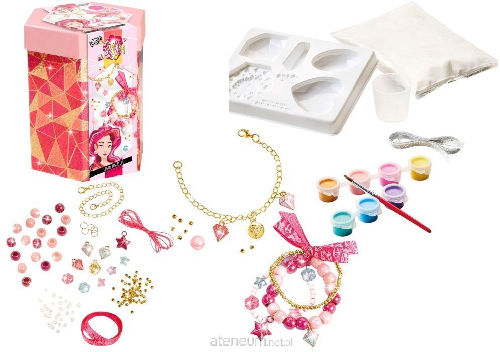 To idealna zabawa nie tylko dla jednej osoby ? możesz zaprosić przyjaciółkę i razem zaprojektować własną kolekcję! Dzięki zawieszkom w kształcie gwiazd, diamentów czy serc, Twoje bransoletki będą wyglądały niczym z najmodniejszych butików. W zestawie znajdziesz też foremki do odlewów gipsowych i farbki, dzięki którym stworzysz zawieszki od podstaw i pomalujesz je według własnej wyobraźni. Efekt? Biżuteria, jakiej nikt inny nie ma!