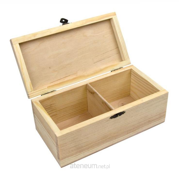 Pudełko drewniane z zamkiem, wykonane ze sklejki. Cięte laserowo, co daje wysoką precyzję kształtu. Idealne do techniki decoupage, także techniki malarskiej, wykonywania efektów spękań bądź efektów 3D za pomocą past strukturalnych. Stanowi surową bazę pod unikatowe elementy dekoracyjne w charakterze użytkowym, prezentowym lub świątecznym. Posiada podwójną przegrodę.