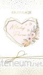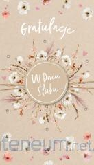 Otwierana kartka, pusta w środku, wykonana na papierze (z certyfikatem EFC) z wyraźnie widoczną fakturą. W zestawie ekologiczna koperta.