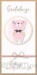 Otwierana kartka, pusta w środku, wykonana na papierze (z certyfikatem EFC) z wyraźnie widoczną fakturą. W zestawie ekologiczna koperta.