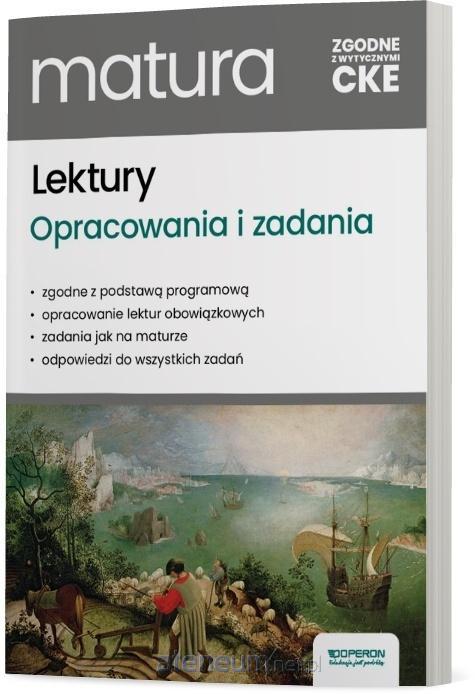 Lektury na egzaminie maturalnym. Opracowania i zadania przydadzą się uczniom także w bieżącej nauce, a nauczycielom w ramach zajęć lekcyjnych lub dodatkowych jako źródło zadań sprawdzających znajomość lektur oraz do oceny stopnia przygotowania uczniów do matury.