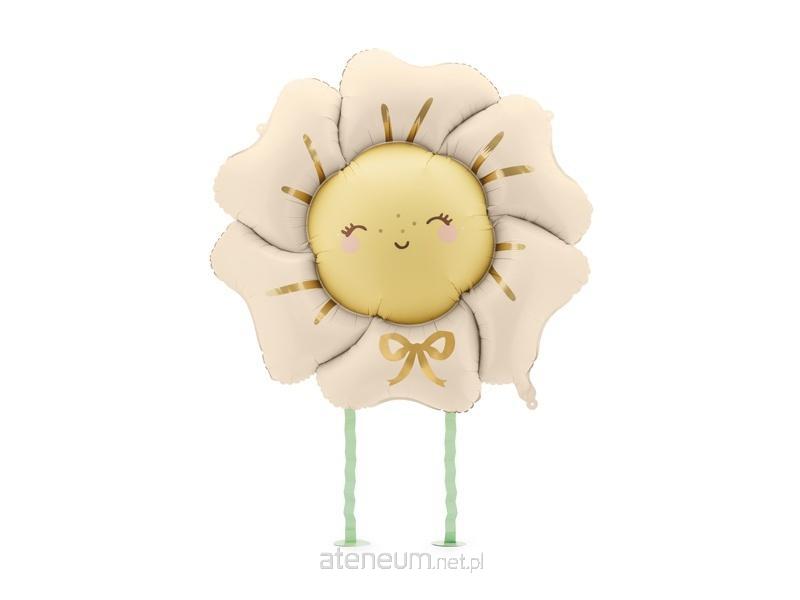 Chodzący balon foliowy kwiatek w kolorze jasnobeżowym z przymocowanymi nóżkami. Balon do nadmuchania helem. Rozmiar przed napompowaniem ok 104 x 104 cm, rozmiar po napompowaniu ok 80 x 80 cm. Wysokość nóżek około 40 cm. Zestaw zawiera słomkę.