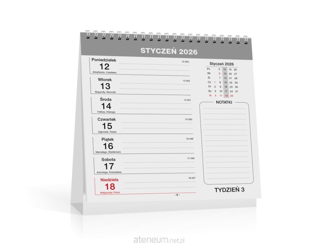 Kalendarz 2026 biurkowy tygodniowy Paski
