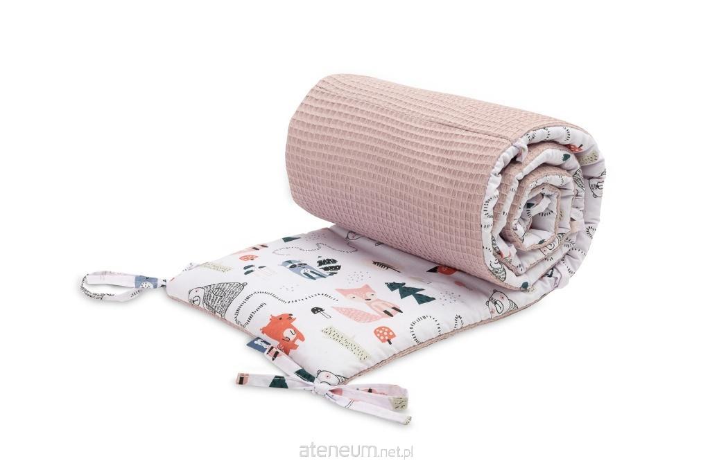 Cienki ochraniacz do łóżeczka od Sensillo to alternatywa dla grubych i ciężkich ochraniaczy powszechnie stosowanych w dziecięcych łóżeczkach. Cienkie wypełnienie z antyalergicznej owaty zapewnia odpowiednią izolację, ochroni dziecko przed urazami podczas poruszania się po łóżeczku, a przede wszystkim jest bezpieczne i minimalizuje ryzyko uduszenia się maluszka. Na niepowtarzalny wygląd ochraniacza składa się połączenie dwóch materiałów. Jedna strona wykonana została z miękkiej i przyjemnej w dotyku bawełny o strukturze wafla oraz druga z bawełny z kolorowym nadrukiem. Wszyte co ok. 30 cm tasiemki do mocowania gwarantują utrzymanie ochraniacza we właściwej pozycji.
