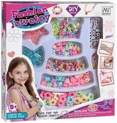 Odkryj fascynujący świat tworzenia biżuterii z naszym kompletnym zestawem "Fashion Jewelry DIY Design"! Ten kreatywny zestaw zawiera bogaty wybór różnorodnych koralików w wielu kształtach i kolorach, urocze zawieszki oraz elastyczne sznurki, dzięki czemu Twoje dziecko może zaprojektować i wykonać niepowtarzalne bransoletki, naszyjniki i inne ozdoby. Zestaw "Fashion Jewelry DIY Design" to nie tylko świetna zabawa, ale również doskonały sposób na rozwijanie kreatywności, wyobraźni oraz zdolności manualnych u dzieci w wieku 5 lat i starszych. Tworzenie własnej biżuterii pobudza zmysł estetyczny i pozwala na wyrażenie własnego, unikalnego stylu. W opakowaniu znajdziesz wszystko, co potrzebne do rozpoczęcia przygody z tworzeniem biżuterii. Przejrzyste przegródki ułatwiają organizację koralików, a dołączone inspiracje mogą stanowić punkt wyjścia do pierwszych projektów. To idealny prezent dla małych miłośniczek mody i rękodzieła, który zapewni im wiele godzin satysfakcjonującej i rozwijającej zabawy. Niech Twoje dziecko stanie się prawdziwym projektantem biżuterii!