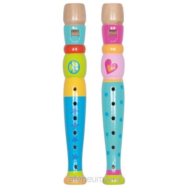 Drewniany kolorowy flet. Pozwala opanować podstawy gry na instrumencie dętym, rozwijając słuch muzyczny, kontrolę oddechu oraz koncentrację podczas nauki melodii.