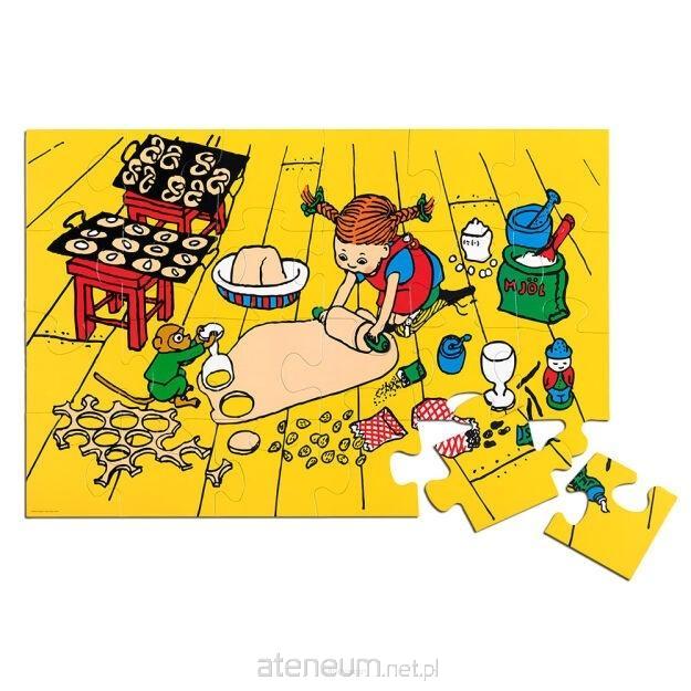 Uroczy zestaw licencjonowanych puzzli został zaprojektowany w Szwecji i starannie wykonany z kartonu na podstawie oryginalnych ilustracji z książek o perypetiach Pippi Langstrumpf.