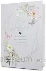 Kartka jest bogato i różnorodnie zdobiona (zależnie od wzoru: metaliczna folia, lakier perłowy, brokat, przyklejone elementy 3D - wypukłe wstawki papierowe, elementy biżuteryjne, tłoczenia).