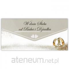 Ozdobna koperta na pieniądze, złocona i tłoczona. W zestawie wkałdka z życzeniami oraz koperta ochronna.