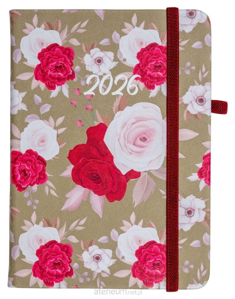 wewnątrz: plan roku i rozkład roku 2026, terminy ferii zimowych, święta oficjalne i zwyczajowe, podróże, protokół powypadkowy w przypadku stłuczki, notes, skorowidz teleadresowy, kalendarium dodatkowe na 2025-2026-2027 rok