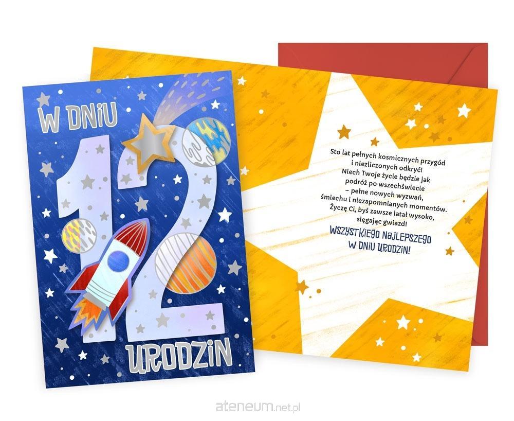 Kartka Dream Cards "W dniu 12 urodzin" DK-1261 Kartka B6 z ozdobnej serii Dream Cards - nieduża, ale robi wrażenie dzięki atrakcyjnej kolorystyce i ciekawym zdobieniom. To idealny wybór łączący przyjazną cenę z jakością. Cechy szczególne: wielkość: B6, 16.6 x 11.7 cm po złożeniu, koperta: w zestawie, kolorowa, zdobienia: kolorowe, różnorodne, bogate (w zależności od wzoru: przyklejane dekoracje, elementy biżuteryjne, odstawniki, metaliczne folie, tłoczenia itp.), okazja: urodziny