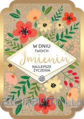 Kartka Dream Cards "W dniu imienin" DK-1276 Kartka B6 z ozdobnej serii Dream Cards - nieduża, ale robi wrażenie dzięki atrakcyjnej kolorystyce i ciekawym zdobieniom. To idealny wybór łączący przyjazną cenę z jakością. Cechy szczególne: wielkość: B6, 16.6 x 11.7 cm po złożeniu, koperta: w zestawie, kolorowa, zdobienia: kolorowe, różnorodne, bogate (w zależności od wzoru: przyklejane dekoracje, elementy biżuteryjne, odstawniki, metaliczne folie, tłoczenia itp.), okazja: imieniny