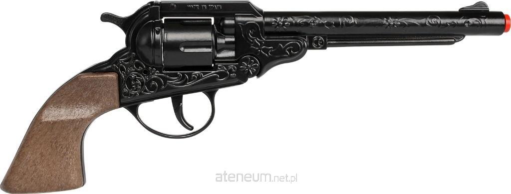 Rewolwer kowbojski metalowy na 8 naboi z bębenkiem. Wymiary: 27,5x10cm. Wiek: 3+.