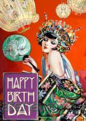 Karnet B6 z kopertą Urodziny Kobieta z wachlarzem