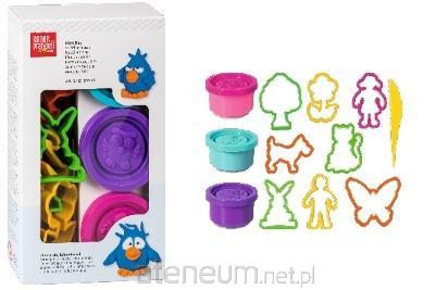 Zestaw 3 mas do modelowania (każda po 20 g) i 8 plastikowych foremek do wycinania.