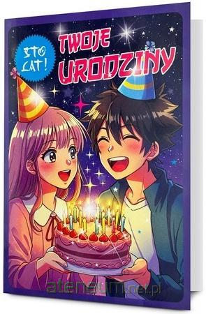Kartka jest zdobiona opalizującą folią holograficzną, zawiera życzenia i kolorowy środek. W zestawie znajduje się koperta, kolorystycznie uzupełniająca się z kartką.