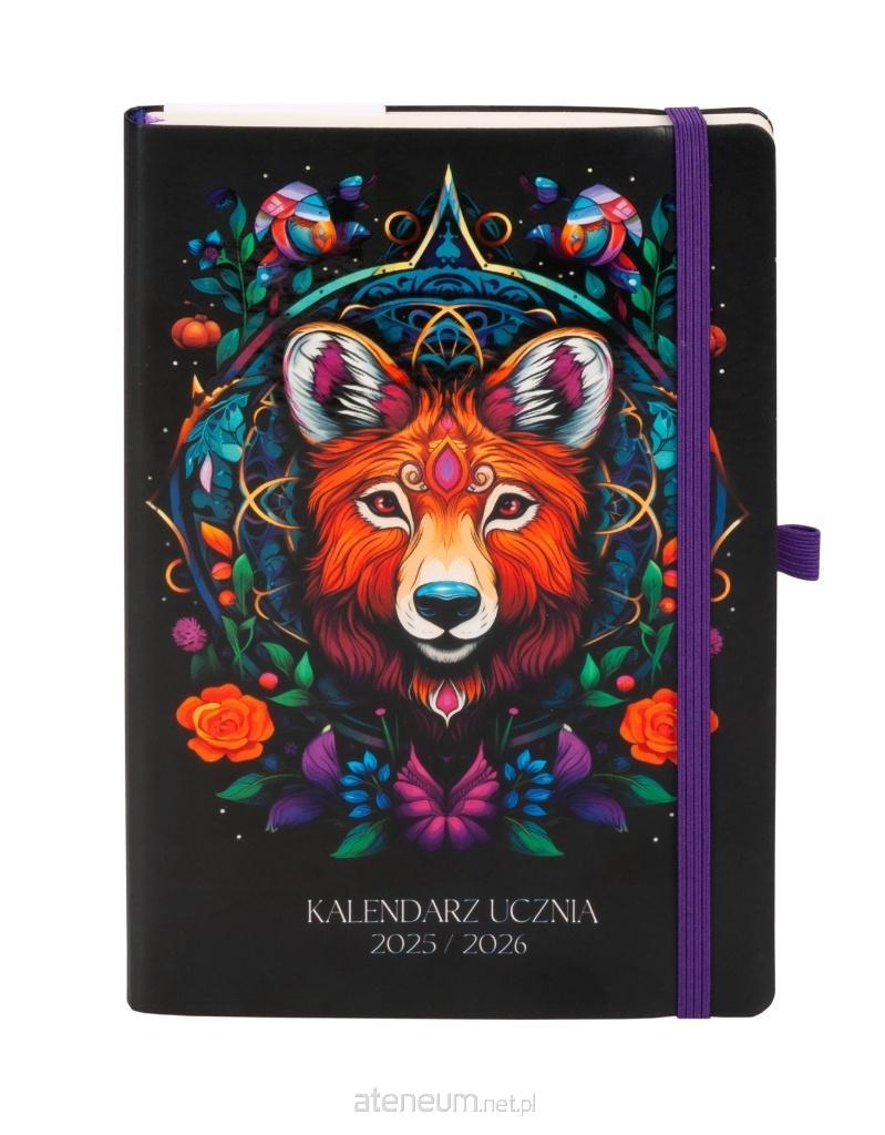 Wnętrze: tydzień na stronie Liczba stron: 180, Gramatura papieru: 80 g/cm2,Papier: chamois,Okładka: twarda, Pionowa gumka zamykająca,Zakres dat:wrzesień 2025 sierpień 2026, Dodatki szkolne:, Plan zajęć, Tabela ocen, Prace domowe, Sprawdziany, Zebrania z rodzicami,Wycieczki, Zajęcia pozalekcyjne, Wydatki, Lektury,Ważne wydarzenia oraz kolorowanki
