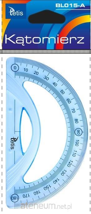 Kątomierz wykonany z przezroczystego tworzywa z wyraźną skalą. Kolor niebieski